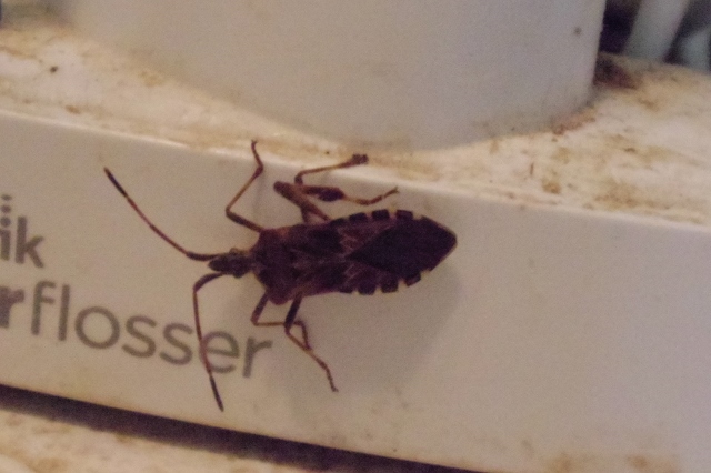 … an insect crawling on my mom’s Water Pik. I scooped the insect into a paper cup and deposited the insect outside.