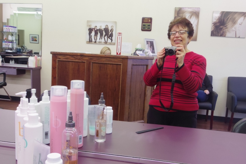 On Wednesday, I went to see my hairdresser, Jacquie, for a haircut. Beauty salons are great places for mirrors. I placed the bear in the mirror and posed it with the beauty products. The bear is happy to admire its reflection… or maybe visit with its best friend. |