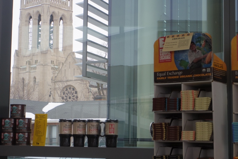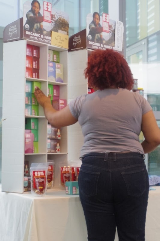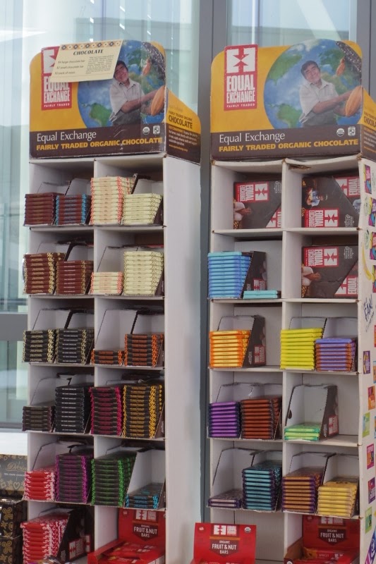 After the workshops were over, I had the opportunity to take a few photographs and to take a look at the tables, where good stuff was being sold, including this Equal Exchange chocolate. The chocolate comes from small farms in South America. I was tempted to take a picture of the two chocolate bars that I bought but, instead, I just photographed the display.