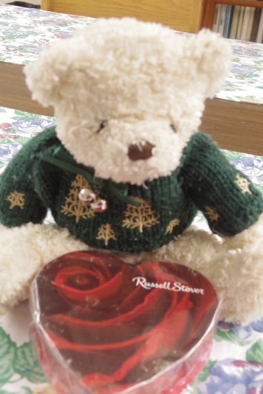 On Thursday, at painting class at Stella Niagara, we had a Valentine’s Day party. The bear got a little box of candy and was happy not to be left out of the festivities.