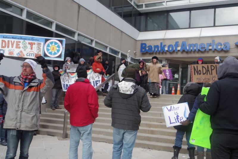 I left the Home and Garden show and went to a water is life march and rally. It was a cold, windy, and raw day. I joined a group that had formed on South Elmwood in downtown Buffalo. We marched in circles for a while and then we marched to the Bank of America. The Bank of America is one of seventeen banks that is funding the Dakota Access Pipeline, the pipeline that the folks at Standing Rock, North Dakota, have so strongly opposed. Below are the images from the march and the rally. The pictures below are images from the rally. |