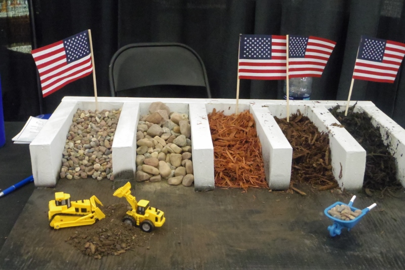 I wandered around the convention center and found some cool stuff… here are options for your garden… rocks? stones? or what color mulch do you prefer? |