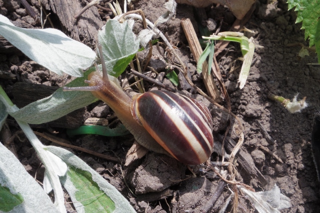 Note: In my last post, a sample of the photographs that I took during week 46 of my 366-day photography project, I focused on the world of the garden. Today, I continue to focus on the smaller, more intimate world of the garden. So I will share a somewhat fanciful, not very scientific poem about the land snail that I photographed moving around in a garden this morning.