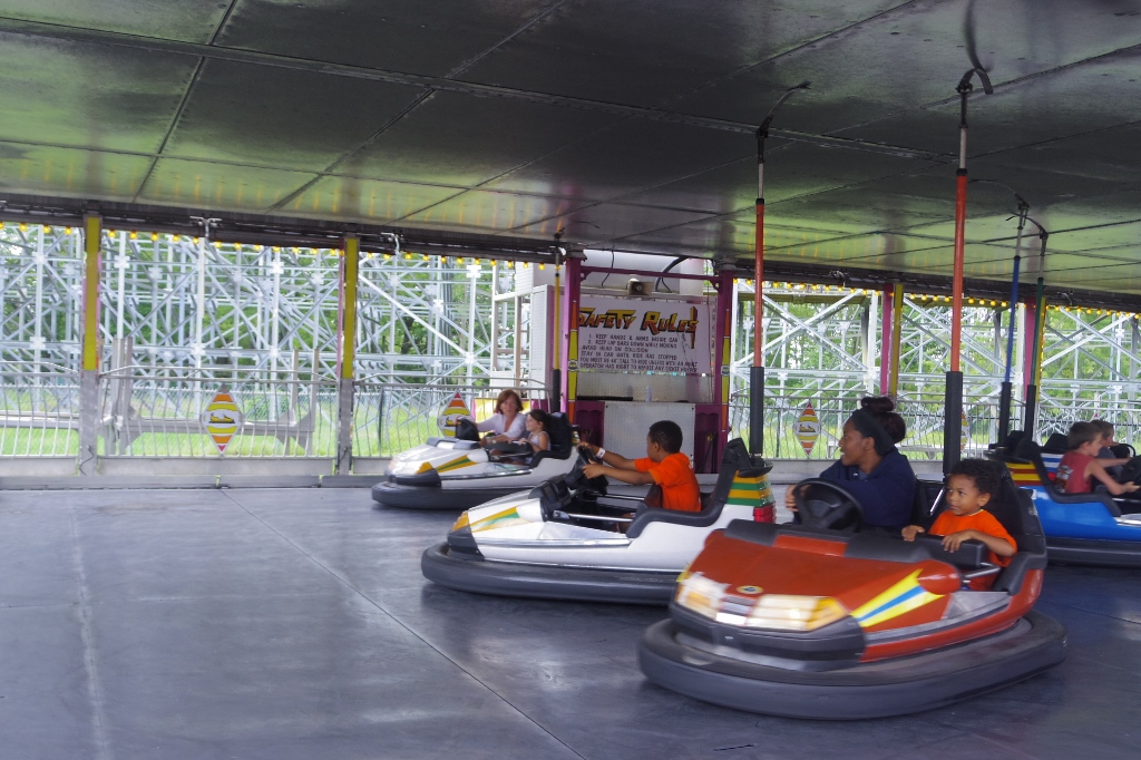 Having mad fun driving bumper cars, where you can drive like a maniac and purposely collide with the other vehicles without causing damage (they have strong rubber bumpers!!). |