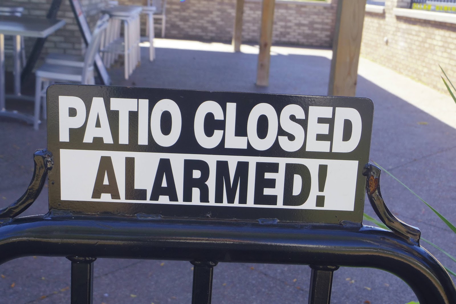 "Patio Closed- Alarmed" ROFL. That reminds me of the signs on the Merritt Parkway that warn you about the "depressed" structures. The signs are actually there so that you can be cautious of the drains that are an inch or two below the surface of the roadway and are essentially depressed into the roadway. But, when I see those signs, I think that the highway department should hire some mental health therapists for those structures.