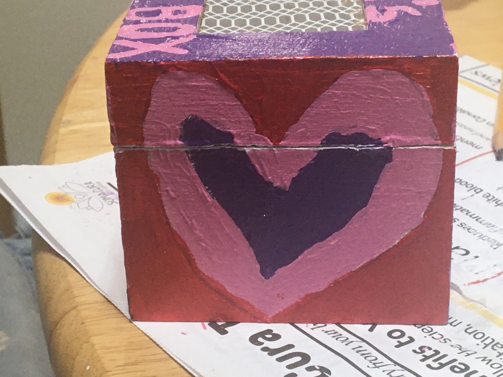 As I was designing my box, I thought about how we are always told to “think outside the box.” That’s actually hard to do because, without the box, we have no structure and, without structure, it’s hard to organize thoughts.