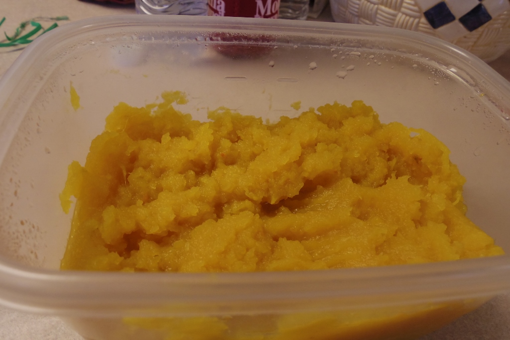 The next day, I made the pumpkin bread, using this recipe from Genius Kitchen: recipe for Fresh Pumpkin Bread