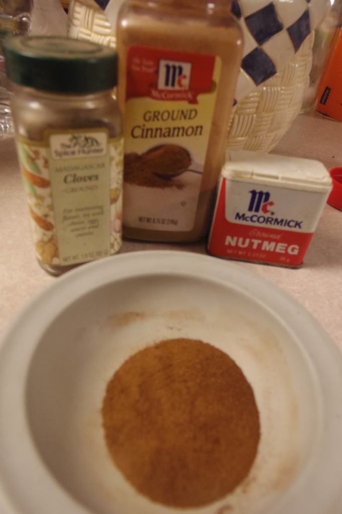I looked on line to see if I could substitute something for the allspice. The internet can be a great cookbook so… substitutions? What I found was… to make a teaspoon’s worth of an allspice substitute, combine half a teaspoon of ground ginger, half a teaspoon of cinnamon, and a dash of nutmeg. The second-choice substitute would be to replace the allspice with pumpkin pie spice, which is a combination of ginger, cinnamon, nutmeg, and allspice.