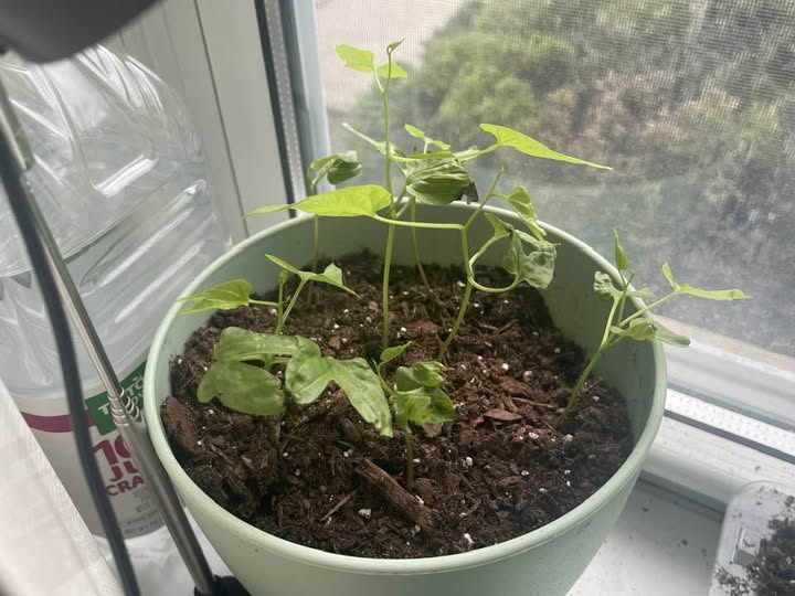 Anna has been busily planting flower seeds and encouraging growth in the community room in this apartment building. I’m an assistant in this project. I help with watering and with turning off grow lights and with planting seeds. These plants are growing and glowing, although they are not ready to be outside. The winter sowing babies have been outside since January, but they are still in the milk jug, which is their little greenhouse, while the indoor babies live in pots on the windowsill+.