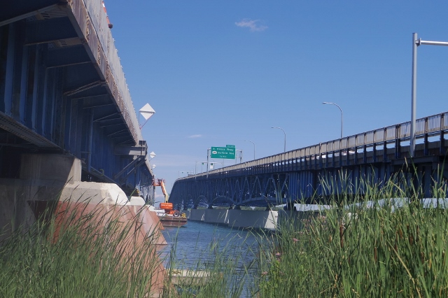 Nobody was out fishing but this bridge is where fisherfolk can often be found. Common fish that have been found in the Niagara River include perch, small and large mouth bass, walleye, muskellunge, and northern pike. |