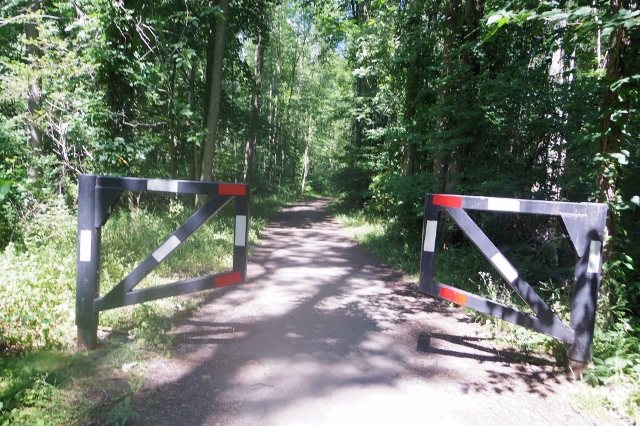 Here is the entrance to the walking trail at Buckhorn Island State Park. People walk here, with or without dogs. Some people ride bicycles although the pathway can be a bit bumpy. There is also a bike path available, near the expressway (I-190). |