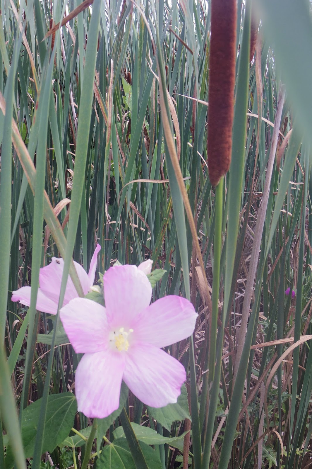 I found this gem amidst the cattails. I believe that it is a wild geranium. It attracts birds and adds color to the large field of cattails. |