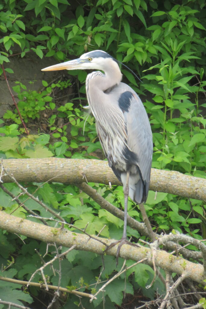 This is a great blue heron, seen at Delaware Park in Buffalo, New York.