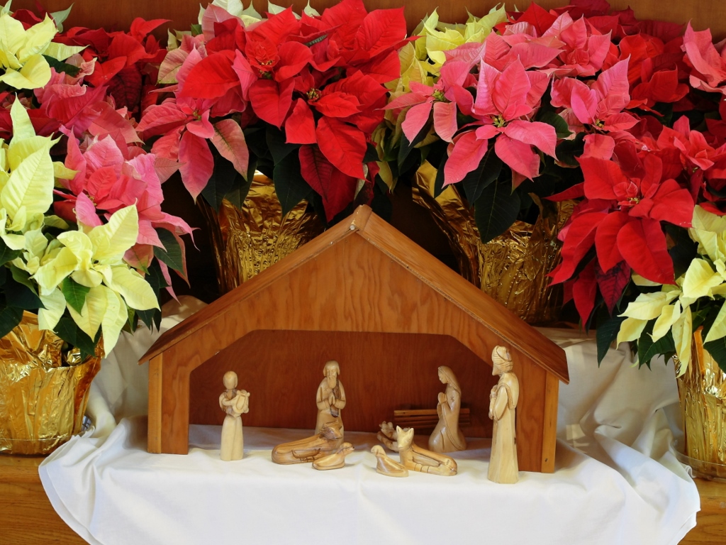 Christmas at church was colorful and bright and full of winter greenery.