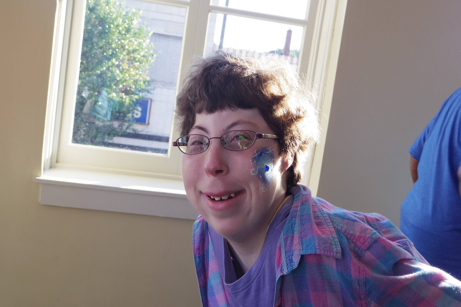 | A face painter also came to add some glitter to our world. Here is one of the folks with a freshly painted face. |