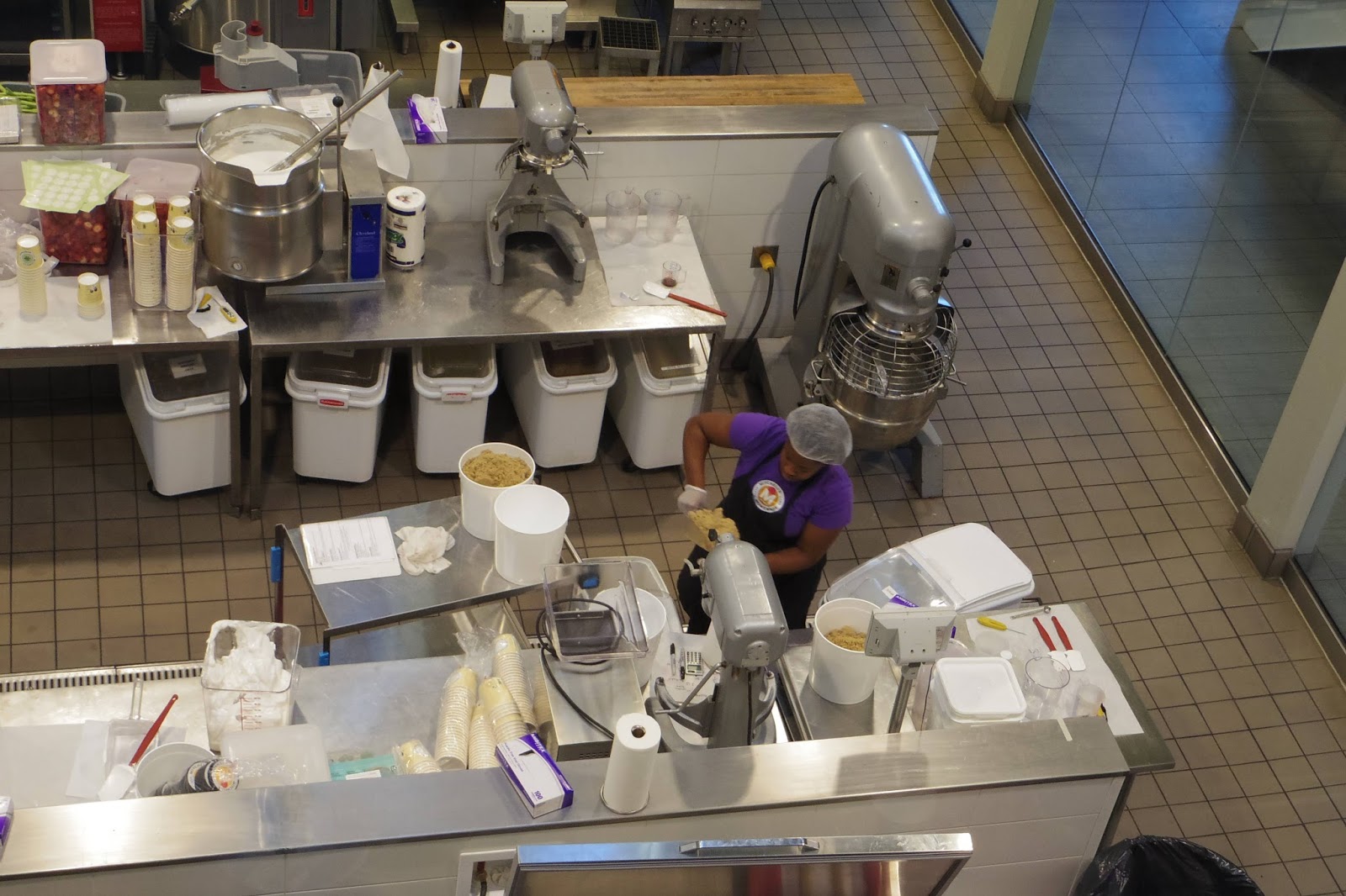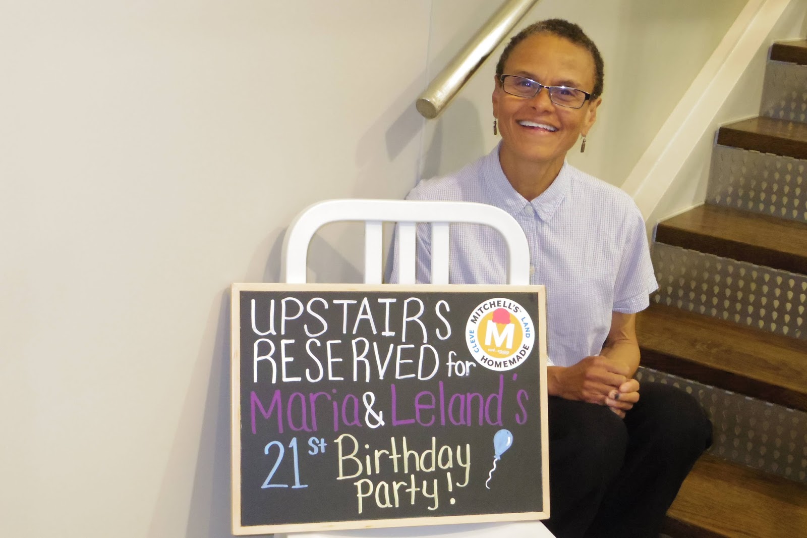 After a delicious dinner at Batuqui, Maria, Charlie, and I went to Mitchell’s, where the birthday party would be held. There were two guests of honor: Maria and Leland (age 21). We had use of a private area upstairs for our festivities. Mitchell’s is an ice cream parlor in Cleveland. All of the ice cream is handmade on site. From the upstairs room, you could look down and see the ice cream being made. That was a good deal of fun for me because I’ve never seen anyone make ice cream and, therefore, thought that the process was magical (apparently not).
