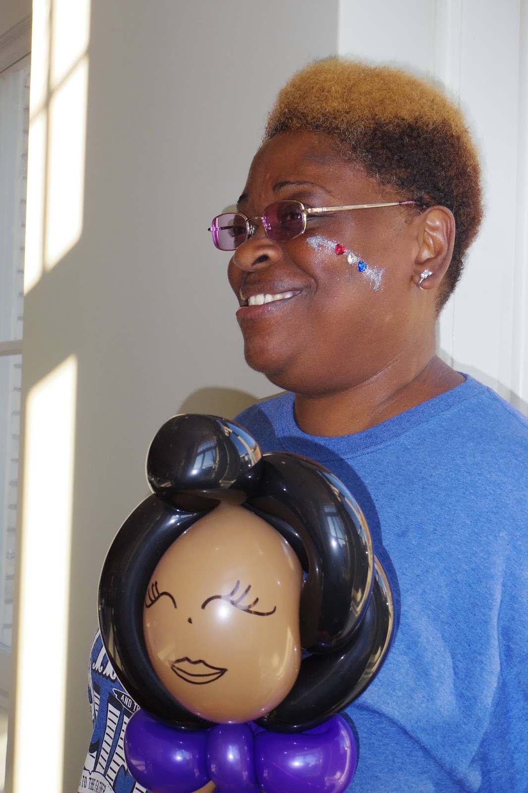 The entertainment at the party included a balloon maker, who created all sorts of animals and humans and other things from balloons. Occasionally, the balloons popped with an abrupt noise. The balloon creations, however, were quite attractive, and I enjoyed seeing those, although, for sure, I could have done without the earsplitting popping sounds!!!