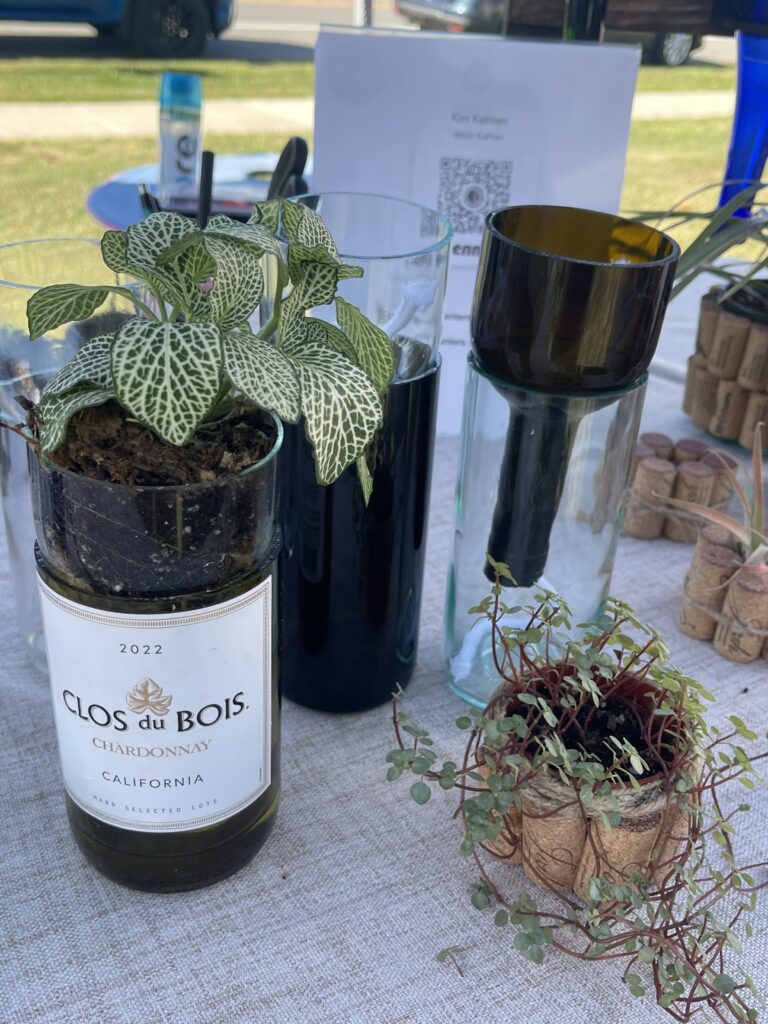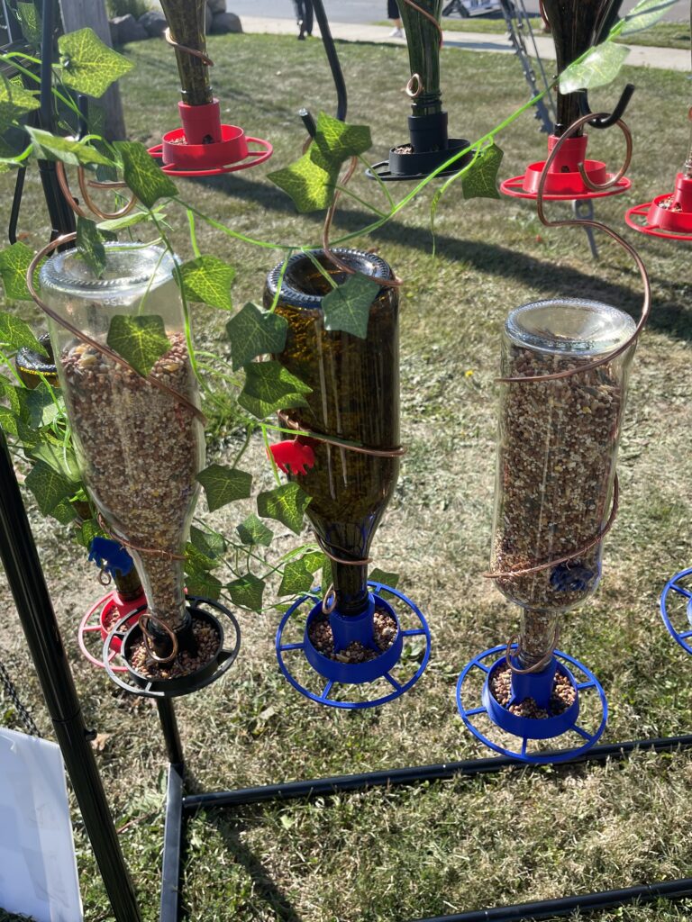 “I love to recycle and I love to drink wine, so I figured why not do something with the wine bottles, and I cut them and made them into self-watering planters,” As for the wine bottles that became bird feeders, Kim left them whole. “I put bird seed in them and made them into gorgeous bird feeders,” Kim said.