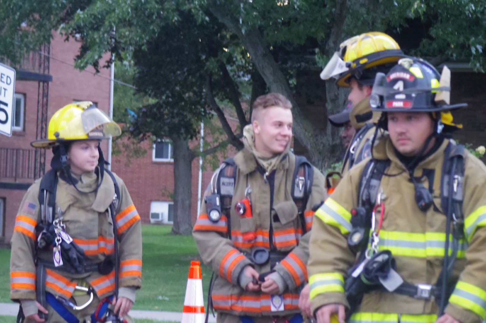 When firefighters arrive, with sirens blaring and lights flashing, they will wear heavy suits and masks and the oxygen from the mask may sound like Darth Vader. It could be frightening.