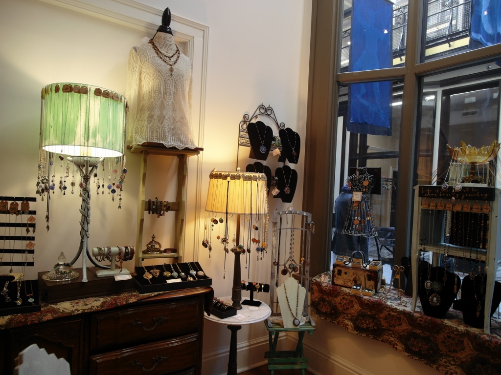 One of the buildings that I visited was the Market Arcade. It was designed in 1892 by Edward B. Green and William S. Wicks. The style of this indoor shopping arcade is considered to be neo-classical. While I was there, I met an artist named Judi Mohn Griggs. Judi creates wonderful designs from beads and buttons that come from the Czech Republic. She is the owner/designer of a business called BFLO BOHO. If you’re looking for one-of-a-kind jewelry or other beaded creations, check out this lovely store in the Market Arcade.