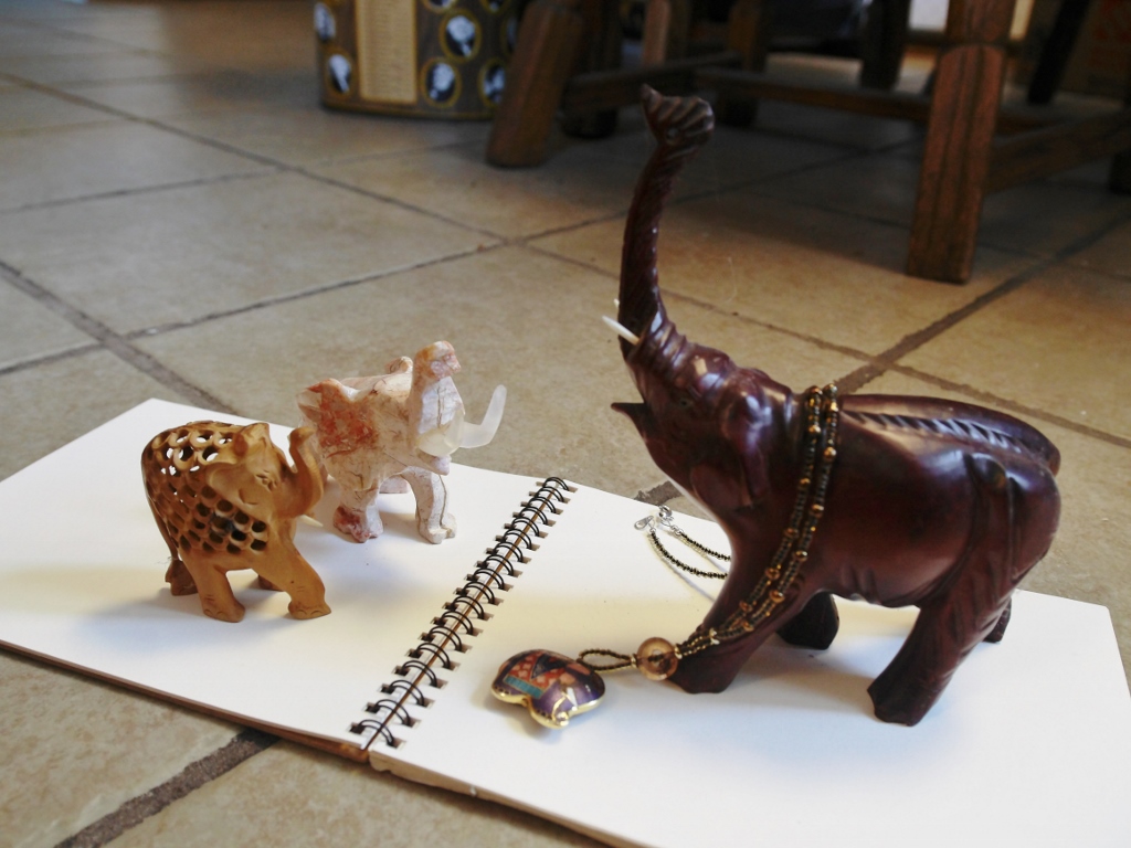 My father loved elephants and he loved elephant sculptures. He collected sculptures of various sizes and colors, and he displayed them on the mantelpiece in the family room.