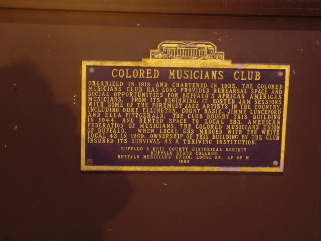 They formed their union chapter in 1917, after Local 43, which was the original American Federation of Musicians chapter in Buffalo, refused to accept any African-Americans into their ranks. Buffalo was one of a number of cities in the United States that had segregated chapters of the musicians’ union. In 1934, the Colored Musicians Club moved into their current home on Broadway. The building was originally a storefront, designed by architect Joseph Geigand for Charles Zifle, business owner. It was built in 1910.