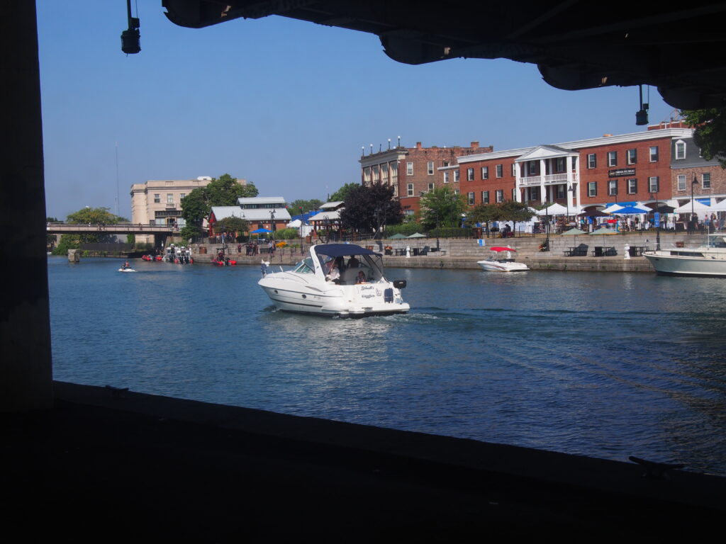 This is where the Erie Canal meets Lake Erie. It is the westernmost point of the Erie Canal. This area in Buffalo, New York, is known as “canalside.”