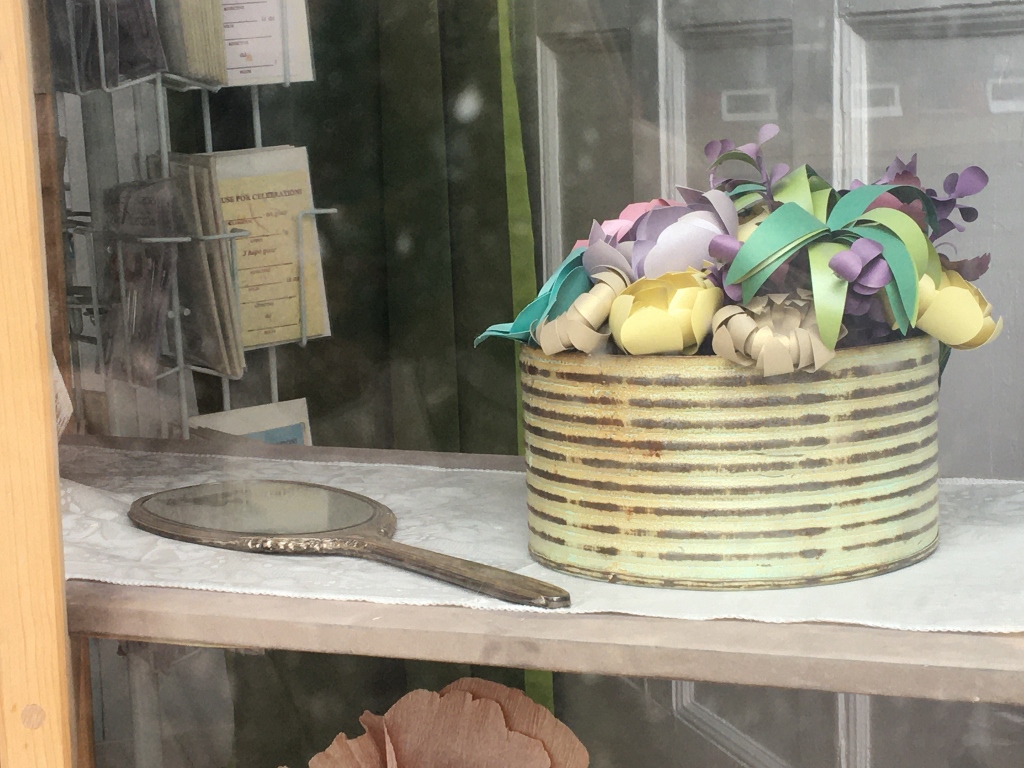 Yesterday, I went to Buffalo to talk to Janna Willoughby-Lohr about the paper flowers and seed bombs that she makes in her store/workshop, called Papercraft Miracles. The place where the paper magic happens is located in the Block Rock area of Buffalo, New York. If you were to walk by the store/workshop, you would see a beautifully decorated picture window that features many varieties of flowers in bouquets or just scattered about the window on different levels. You might have to glance a few times before you realize that all of those flowers are made of paper. That is the magic of Janna’s papercraft.