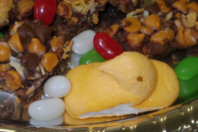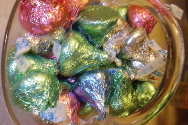 Here are some Hershey’s kisses, dressed in Easter colors. |