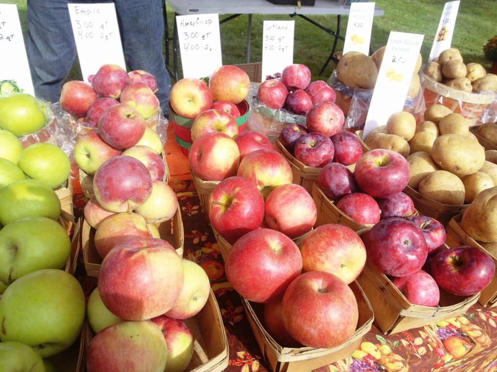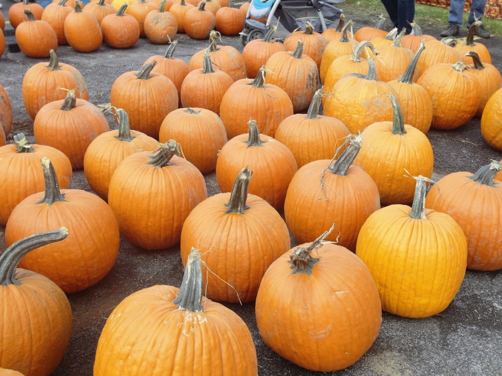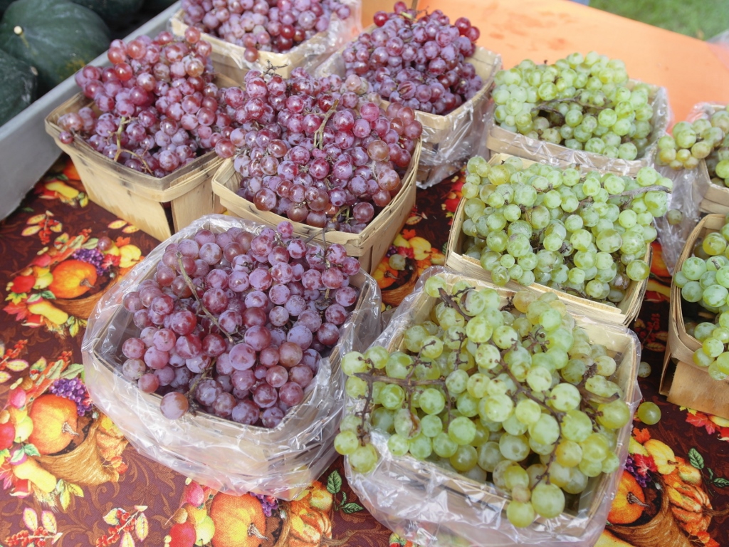 including grapes, apples, and squashes. There are pumpkins of all sizes, from small “pie pumpkins” to big but not monster sized pumpkins.