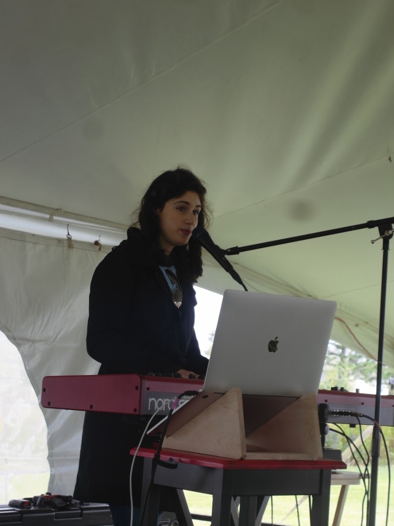A singer-songwiter named Carly Beth offered a bit of live music in a tent, where people ate food that they had purchased at the food trucks that were parked at the event. Her website is: https://www.carlybeth.com/