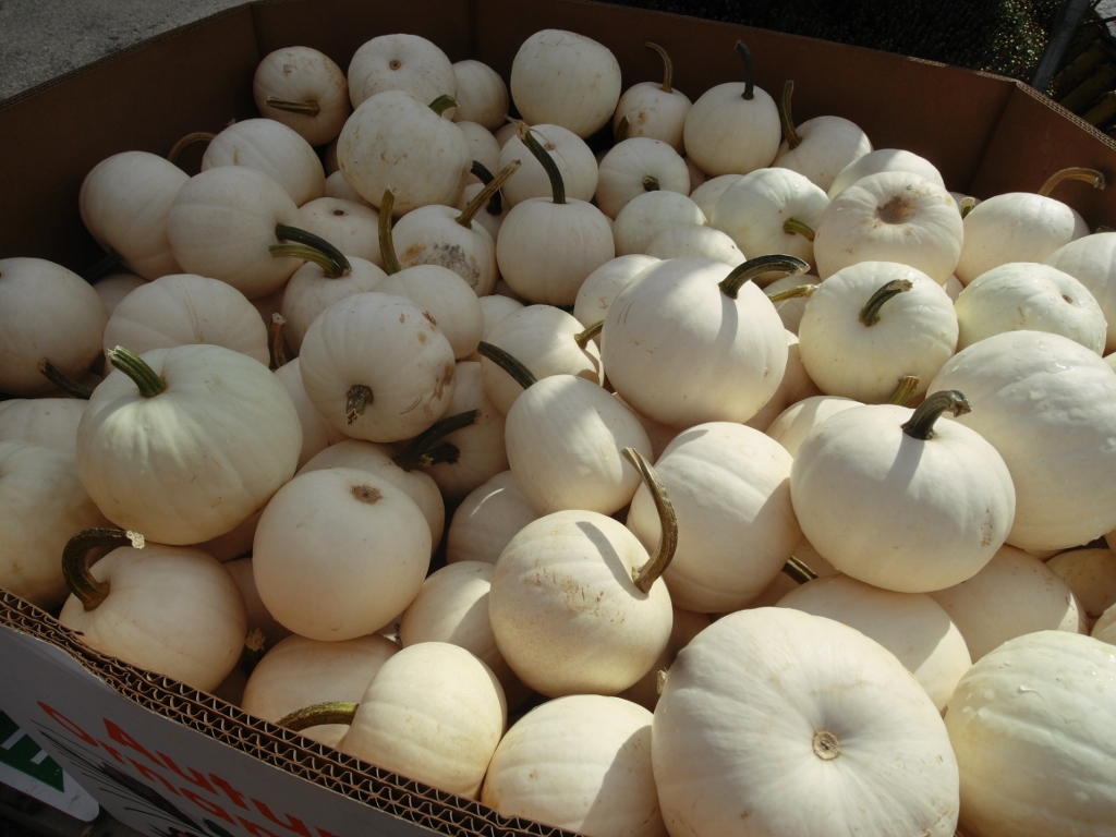 Pumpkins come in several colors, from bright orange to white. There were gourds, which are used mostly for decorating.