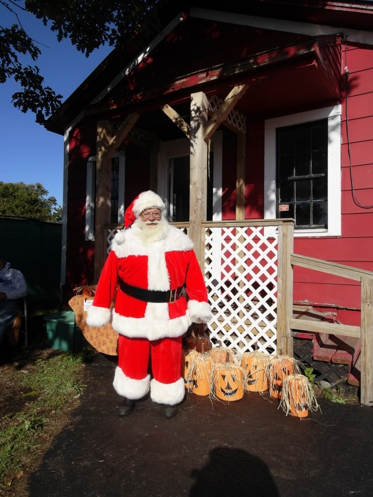 His hands get really icy and his toes shiver. So he comes to visit in October when no one expects to see Santa.