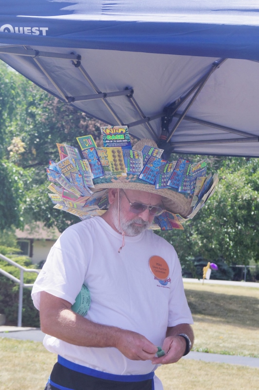 | Mary Lou and Melodie are busy with the silent auction and basket raffle tent. |