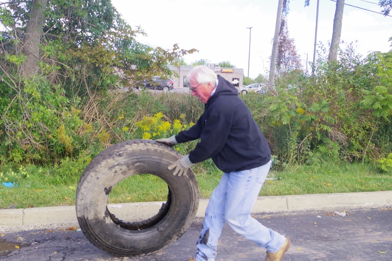 Paul shows off a huge piece of cardboard that was found amidst the brush and weeds. |