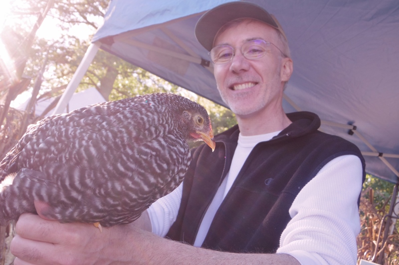 This is Keith Tripi of the Grand Island Farm Cooperative with his rock dove. The rock dove is very soft to touch and is very friendly. |