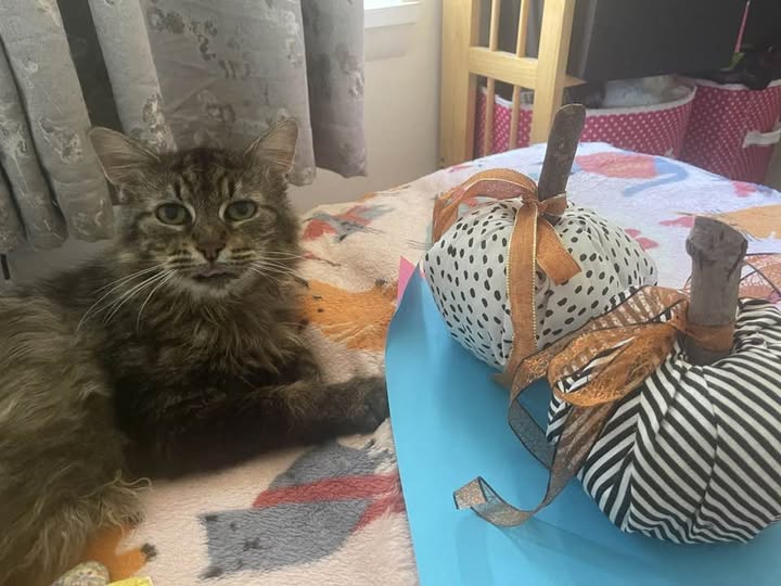Last year, at the Grand Island Memorial Library, I went to a workshop, where we made pumpkins with rolls of toilet paper (should I be saying “bathroom tissue”???), quilt squares, and ribbon. I had so much fun making those pumpkins. I regularly change the ribbon, based on the season, so they have become year-round pumpkins. Trinity likes the pumpkins, too.