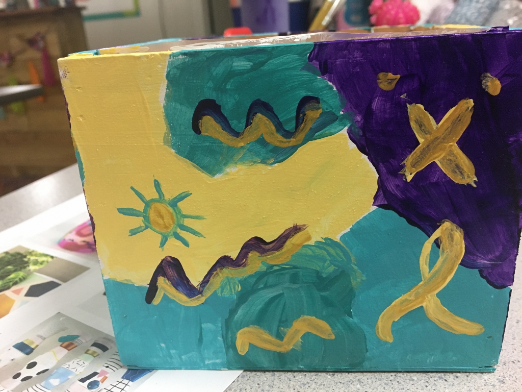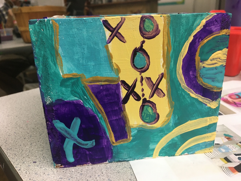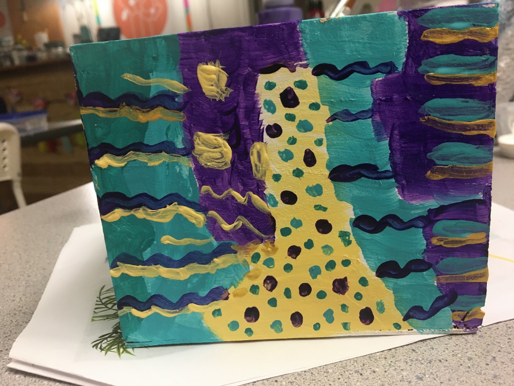 To facilitate fun and wild and abstraction, I went to the “paint bar” and picked out several colors, which included purple, turquoise, green, and yellow.