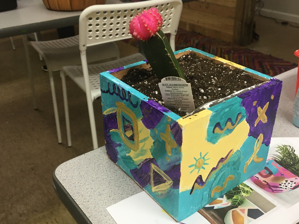 Back to the workshop, which I mentioned was about art and plants. The activity involved painting a planter! And no one went home with an empty planter.