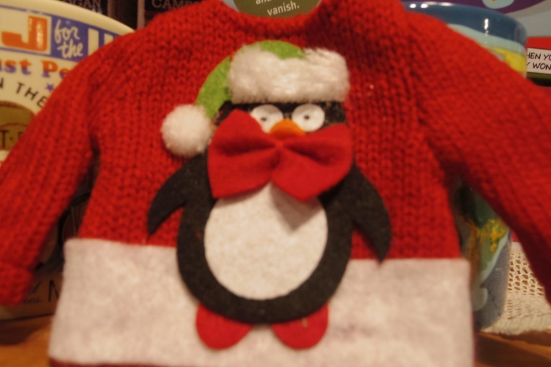 | This is one of the small trees that was decorated at Dick and Jenny’s, where I went to eat today with my Zumba class. Below are more of the decorations at Dick and Jenny’s. |