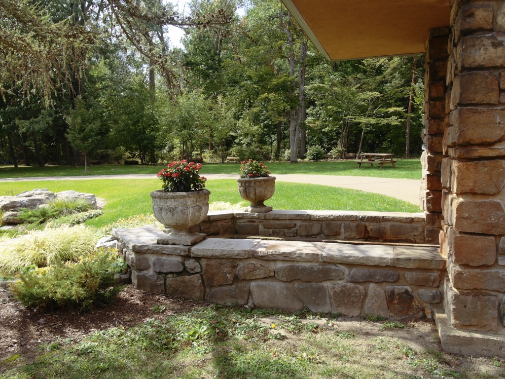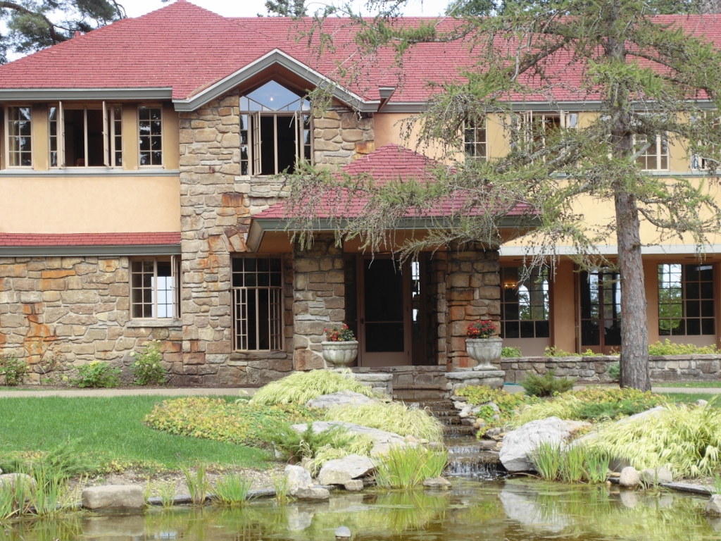 Local stone was used in the construction of the buildings, which can be described as an organic style and a prairie style.