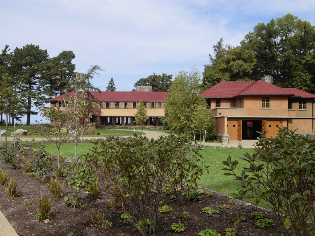 Graycliff is a summer estate that was designed by Frank Lloyd Wright for Darwin and Isabelle Martin in Derby, New York, on the shores of Lake Erie. Derby is about seventeen miles (28 kilometers) from downtown Buffalo. The estate consists of three buildings on approximately 8.5 acres (3.4 hectares). It also includes tennis courts and an extensive series of gardens. Frank Lloyd Wright designed both the buildings and the landscaping.