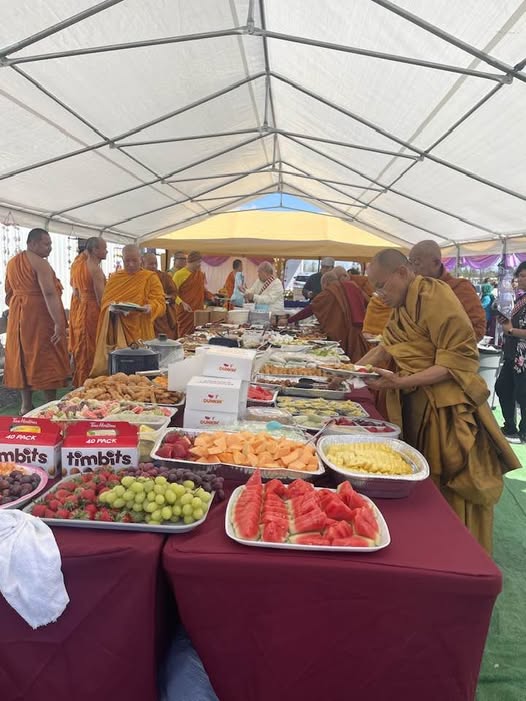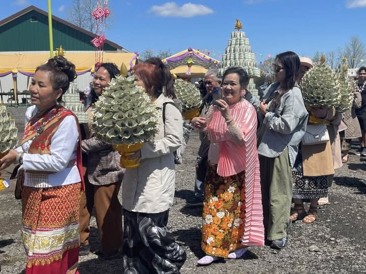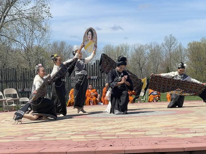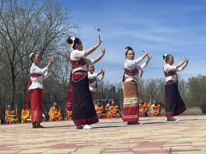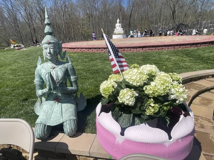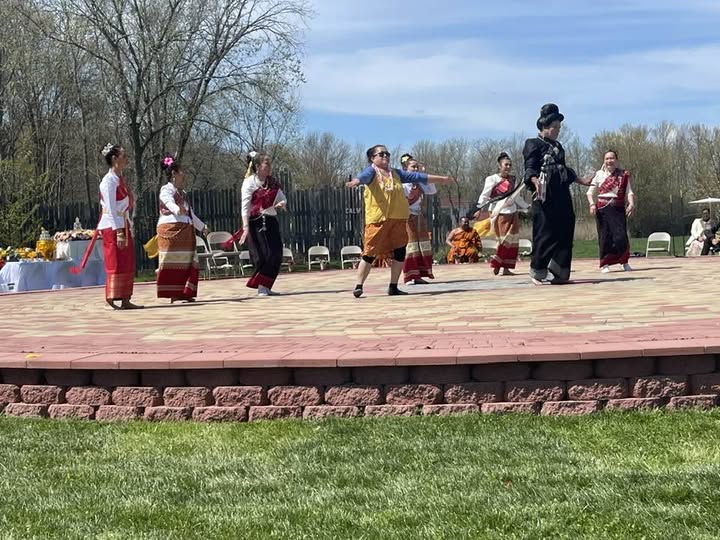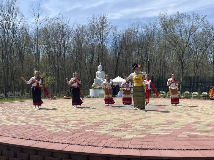 The Thai New Year, called Songkram, is traditionally celebrated between April 13th and April 15th. At the Buddhist Meditation Center (Wat Prodketchettharam America) on Grand Island, New York, Songkram was celebrated on April 26th. It is a festival that features almsgiving, a water blessing for elders, a shared meal, dancing, and much more. I was able to visit the meditation center for part of the event, and I found it to be very joyful. People who were strangers became friends. The entire area owned by the meditation center was colorful and bright. Being there was pure joy.