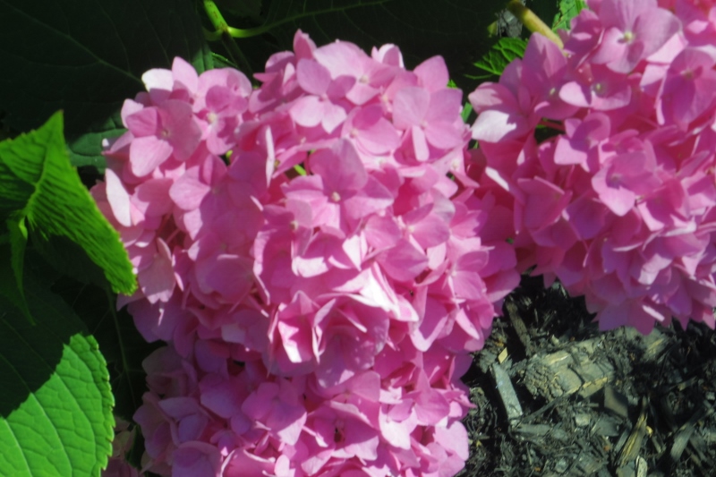 The color of hydrangea flowers can be either blue or pink, depending on the pH of the soil. More acidic soil, with a pH below seven, results in blue flowers, as seen above. If you add aluminum sulfate to the soil, it will make the soil more acidic.