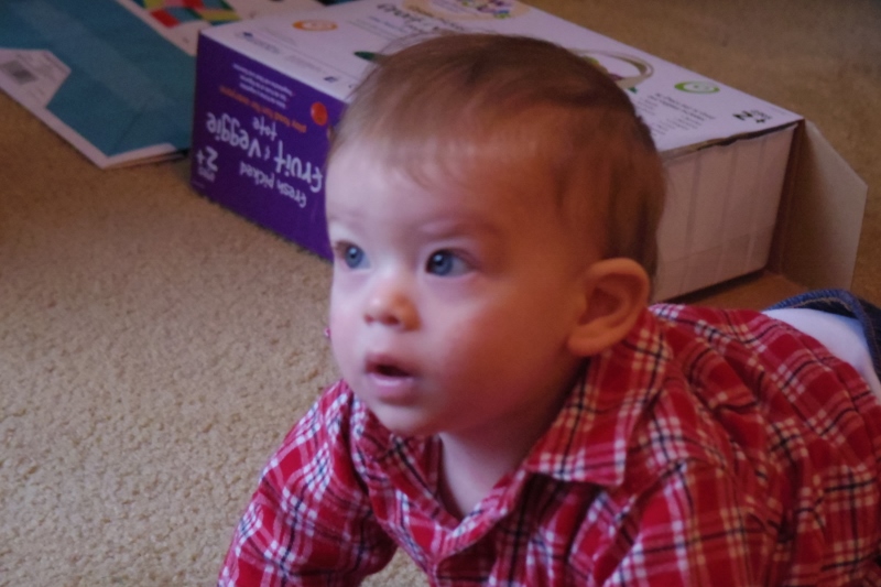 | Elliott is busily exploring his world. He is fascinated by the Christmas tree and by all of the excitement of Christmas. |