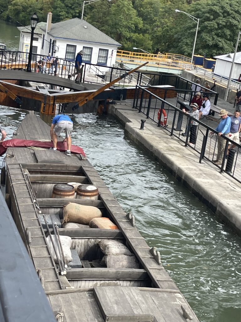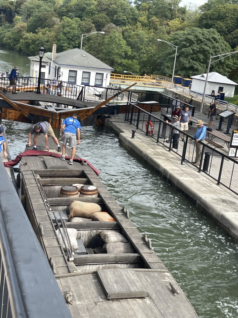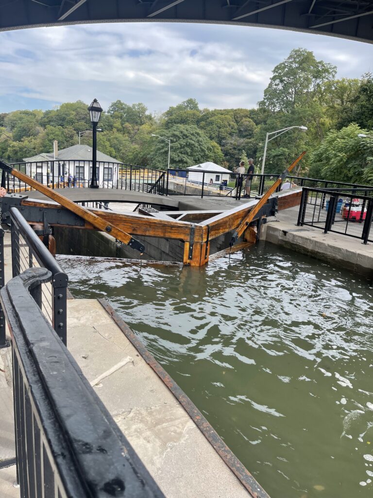 This is what AI has to say about the “Flight of Five”: “a set of five stacked, historic Erie Canal locks built to lift or lower canal boats over the Niagara Escarpment. Originally a double flight, these locks were a remarkable engineering feat that raised boats approximately 60 feet. Today, they function as a spillway for the modern Erie Barge Canal locks (E-34 and E-35) and are a popular tourist attraction that showcases 19th-century canal history.”