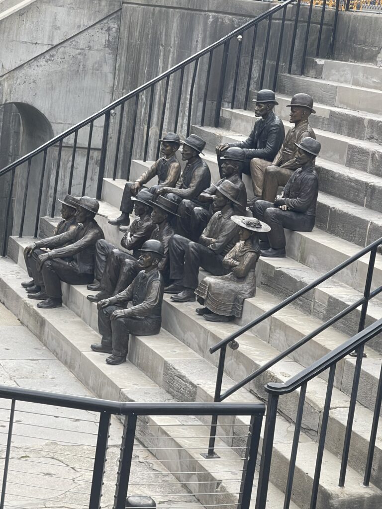I’m not the only one to be fascinated. Look! Here’s an audience for the Big Event! Isn’t that a good looking audience? This audience is an amazing sculpture, designed and created by the one and only Susan Geissler. She travels all over Western New York, creating incredible sculptures that tell so many stories. And not only does she create these sculptures, she also maintains them so they stay in their best condition.
