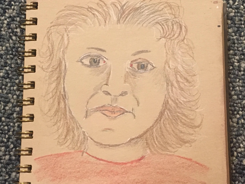 One area in which I chose to embrace imperfection is in making self portraits. I’ve always had difficulty in making pictures of me look like me. It is, I think, a fairly common problem. Until just a few weeks ago, this was not a problem at all. Probably because I hardly ever paint portraits of myself. But a few weeks ago, I joined a facebook group that is dedicated to self portraits. One of the interesting rules of this group is that we can only post our drawings or paintings once a week, on Sunday. The portrait has to be drawn from life. That is to say, by looking in a mirror. No self-portraits drawn from a photograph. So I started doing weekly self-portraits. Unfortunately, because of my imperfections, I managed to break my hand mirror and am now sadly looking forward to seven years of bad luck. ????