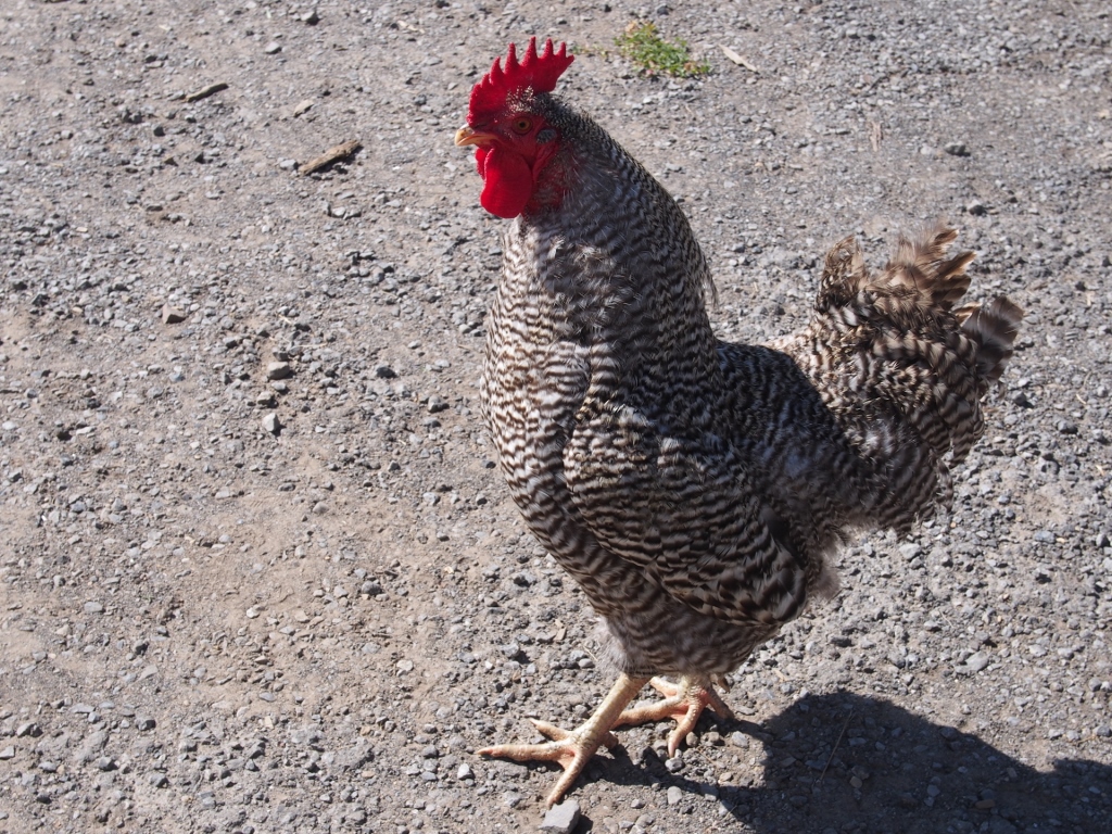 The boss of the farm appeared to be a rooster who was busily running around, near humans but not close enough to be underfoot. I was told that he bites. Jaws in rooster form. What an image. But he didn’t bite. He just crowed with plenty of roosterish enthusiasm before returning to the fenced in area and the many hens. If I were more anthropomorphic than I am, I would say that the Rooster Boss was the star of the show, admired by his many lady friends. Oh, I did say it. And who knows? Maybe they do.