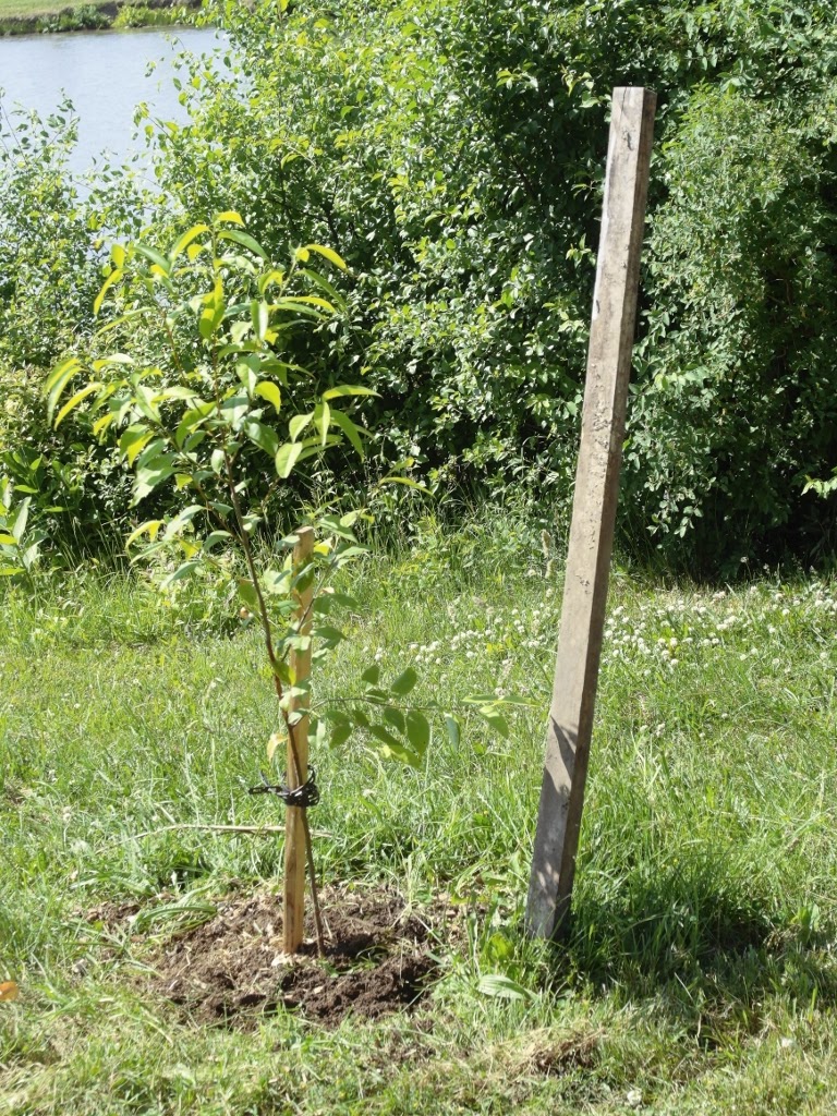 new tree, with nothing covering its trunk. This is a good way to plant a tree. |